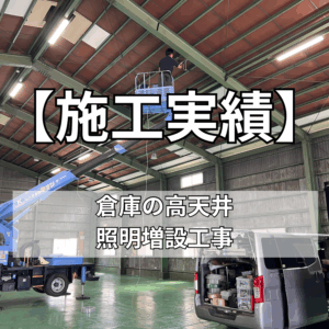 施工実績|倉庫の照明増設工事 バケット車を使用しLED照明12機を設置 今回は柏市の倉…